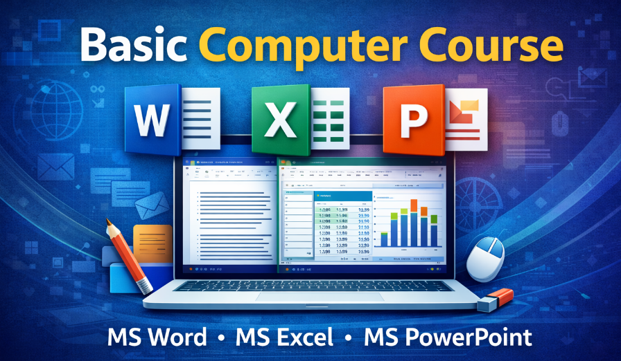 This Basic Computer Course is designed to help beginners develop essential computer skills required for daily use, office work, and entry-level jobs. The course covers computer fundamentals, internet usage, and Microsoft Office tools, including MS Word, MS Excel, and MS PowerPoint.